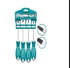 Bộ 4 tua vít dẹp & bake. Tay cầm thiết kế mới Chất liệu: CRV, Cán tròn 1 tua vít SL5.5X100mm. 1 tua vít SL6.5X150mm 1 tua vít PH1X100mm. 1 tua vít PH2X150mm Đóng gói bằng móc nhựa. 30/T