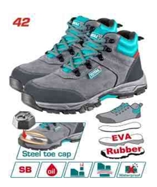 Chất liệu đế ngoài: EVA/Cao su Kích thước: 42 Mũi giày an toàn :bằng thép Chất liệu bên ngoài: da Cấp độ an toàn: SB Đế EVA & cao su, có thể ngăn chặn quá trình thủy phân Đóng gói bằng hộp màu